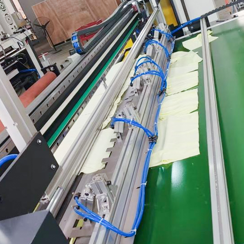 4. Corte vertical del bloque deslizante guía (ajustar el tamaño de corte vertical es conveniente y estable)/corte transversal servoaccionado (uniforme, estable y confiable durante la operación a alta velocidad), la tela cortada está libre de rebabas, limpia y sin desviaciones, y el ancho es ajustable.